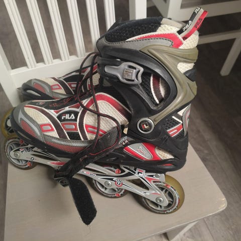 Hyvökuntoiset, aikuisen vähäisessä käytössä olleet Filan rullaluistimet. Koko 45,5. Max.paino 100kg.