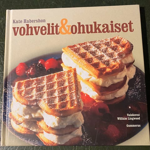 Pieni ”taskukokoinen” reseptikirja, jossa erilaisia ohukais-, vohveli- ja hillo/hyytelöreseptejä.