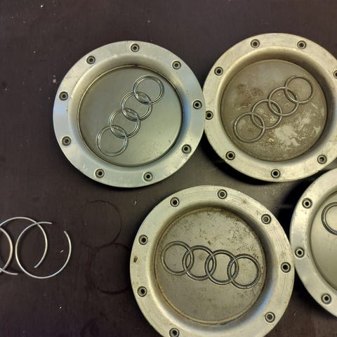 Keskiöiden pitäisi sopia Audi A-mallin vanteille, joissa on pulteille menevät urat. Myös VW/Skoda merkit ovat samaa kokoa. (Löytyy myös Q mallin harmaita)