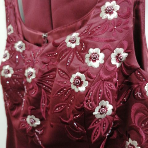 Klassisen upea vaalea iltapuku, hihaton malli laskoskangas olkapäillä. Vetoketju toimii avattava selkämys. Kokopituus 138 cm