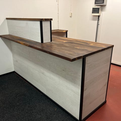 Säädettävä työpöytä, jossa on vaalea puukansi ja harmaa metallirunko. Pöydän muotoilu mahdollistaa ergonomisen työskentelyn. Pöytä on varustettu pyöreällä lisäpöytätasolla, joka on myös puukantinen. Soveltuu toimistokäyttöön tai kotitoimistoon.