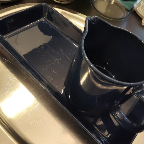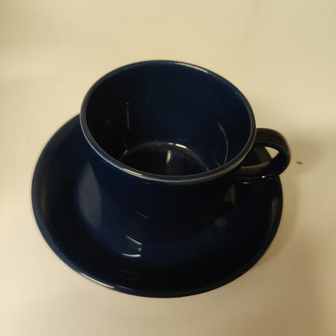 Muutaman kerran käytetyt astiat. 7 kahvikuppia, 4 tassia, 5 kakkulautasta ja 1 tarjoiluastia.