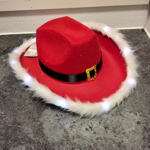 Kerran käytetty cowboy hattu, naamiaisasu. Cowboy hattu on pinkki prinsessa teemainen.