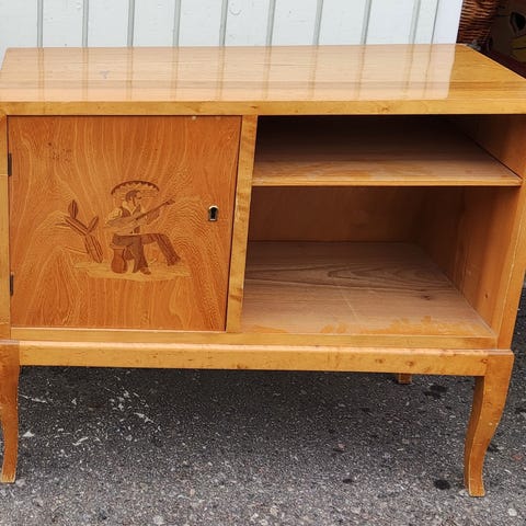 Vanha hyvä hylly ja pieni korkea pöytä. Tehty rehellisestä mäntypuusta. Jämeriä käyttökapineita mutta eivät tietenkään virheettömiä. Kolhuja ja sellaista löytyy. Kukkapöytänä tai laskutasona toimiva pöytä on 28 kertaa 28 ja 94 korkea. Kaappi on 130 korkea, 82,5 leveä ja 37 syvä.(alhaalta) Nämä menee hyvin käyttöön tällaisenaan tai vastaavasti helpot tuunauskohteet jos tykkää maalatusta pinnasta enemmän. Hylly on 59 euroa, pöytä 25 euroa. retro vintage hylly rustiikkinen rustic talonpoikainen wooden kaappi puuhylly puukaappi pöytä kukkapöytä cabinet shelf
