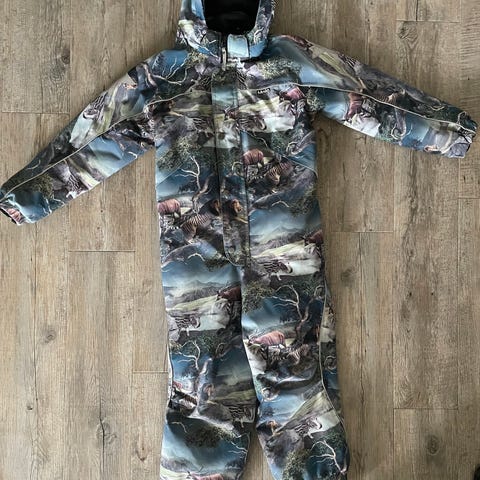 Myydään hyväkuntoinen, yhdellä lapsella käytössä ollut ihana sateenkaariraitainen Molo Polaris talvihaalari, koko 122. Lämmin, muhkea ja siisti. Viimeisessa kuvassa näkyvä ”farkkukuviointi” armollinen loskakeleillä. Täysin ehjä, myös alkuperäiset jalkojen silikonilenksut yhä kunnossa.