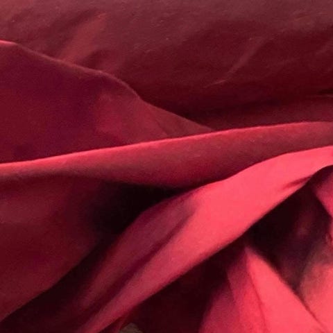 Upea kaksipuoleinen silkkityö, jossa kirjailtu lotuksen kukka. Toinen puoli musta, toinen puoli tumman punainen. Tekstiiliä voi käyttää pöytäliinana, huivina tai ripustaa vaikka seinälle. Pituus 168cm.