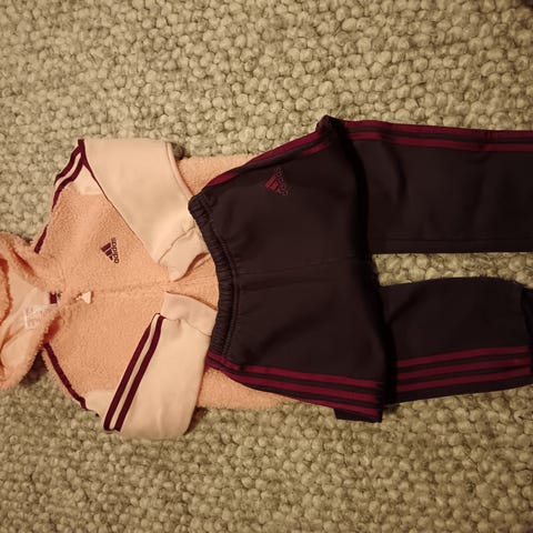 Adidas lasten collegeasu koko 104. Paita on vaaleanpunainen, housut harmaat. Hyvä kunto, vähän käytetty!