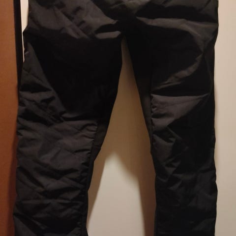 Mustavalkoiset laskettelehousut. Strech vyö. Hyvä lumilukot ja vetoketjut lahkeessa.