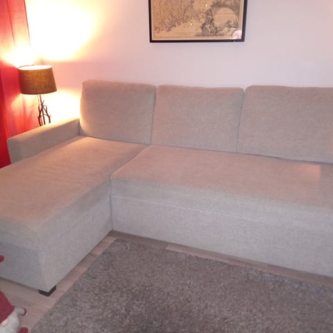 Hyvä perusvuodesohva, helppo ja yksinkertainen avausmekanismi. Vuoteen mitat 180 cm x 120 cm. Somistetyynyt 2 kpl sisältyy hintaan.