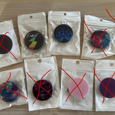 Ollut jonkin aikaa käytössä, nykyisessä jonkin verran tarra pintaa, mukaan uusi tarrarinkula josta leikkaamalla sopiva