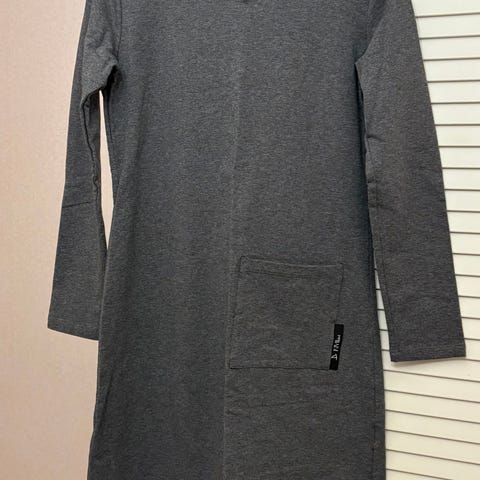 KiviKivi-merkkn hupullinen laadukas mekko. Ollut harmaa. Värjätty keltaiseksi. Värjäys jättänyt eteen pienen tumman pilkun.