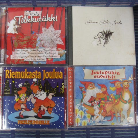 Myydään jouluisia cd-levyjä 2,00 euron kappale. Kaikki cd:t kuunneltu ja todettu toimiviksi. Cd:ssä voi olla naarmuja & kansipapereissa jälkiä/omistuskirjoituksia, mutta cd-kotelot ovat ehjät. Postituskulut ostajalle ja noutokin sovittavissa.