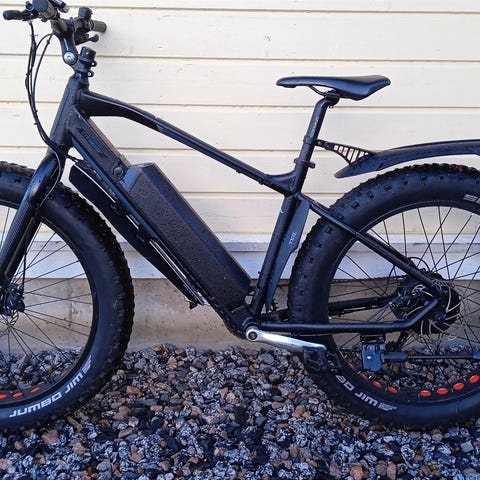 Muutaman vuoden ajettu, n.1100km, sähköavusteinen fatbike, mukaan nastakumi ja valot, nivellukko..