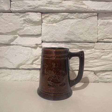 Upsala Ekeby iso musta tarjoiluvati keramiikkaa. Halkaisija n. 34 cm.