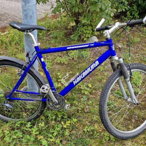 Dyykkaillessa on ruennut näitä pyöriä sattumaan kaatikselta mukaan. Tästä tarvitsevalle? Lapselle itsetuhonen harrastus? Sininen 26'' kiekoilla ehkä 6-9 luokkalaiselle rungon puolesta. Nakamura merkkinen, tuntuu hiton laadukkaalta vehkeeltä, kaikki pelaa vaihteet ja jarrut; pyörät suorassa, laakereissa ei klapia. Satula oli kiinteästi aika alaspäin kulmassa, niin lie tarkotettu alkamäkipyöräksi? Kokeiltiin kaikenlaisia satuloita, mutta ei löydetty sopivaa. Puhelin hajosi, ei ole laittaa kuvia. Kulkeutuu menojen mukaan Joensuuhun, mahoillisesti jopa liperin tai outokummun seutuville menojen mukaan. Soittamalla saa kiinni nollaneljäneljä 3811456