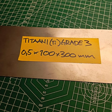 Jos ostat kummatkin myynnissä olevat titaani-arkit (0,5 ja 0,8 mm) niin niiden yhteishinta on silloin 60€.