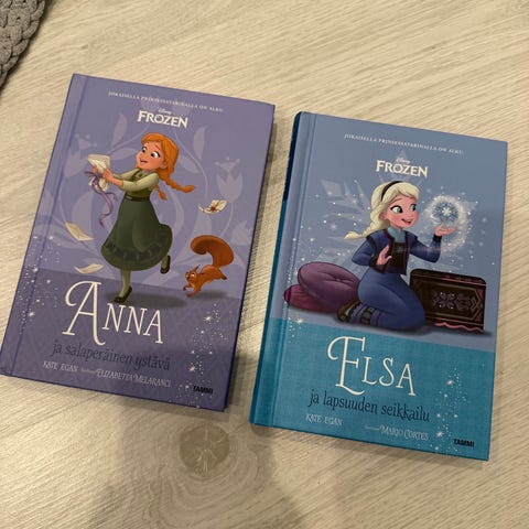 Disney Frozen Lastenkirjat, sisältäen 'Lumen Valtakunta' ja 'Pelastustehtävä' -kirjat. Kirjat ovat suomenkielisiä ja sopivat lapsille. Kertovat Frozen-elokuvien tarinoita kuvitetussa muodossa.