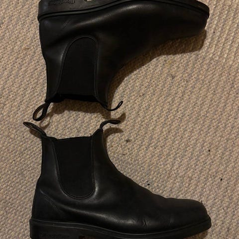 Viime talvena ostettu itselle (hyvin leveään jalkaani) hieman liian kapeaksi todettu ja siksi tosi siistit tasmanialaiset Blundstone chelsea-kengät. Vedenpitävät. Näissä lämmin thermal-vuori ja pohjalliset lampaanvillaa. Kevyet klassikot aitoa nahkaa. Pohja pitävä ”TPU Outsole With PU Midsole and SPS Shock Protection System”. Koko 6 1/2 vastaa kokoa 40, minun jalkani noin 40,5, saattaa mennä koolle 41. Lisätty kuvat pohjallisen mitasta. Unisex-malli. Täällä kokotaulukko: