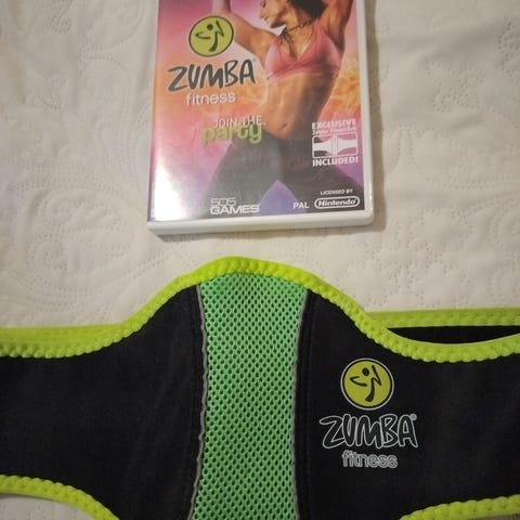 Zumba Fitness Join the Party on Nintendo Wii -pelin mukana tulee pelikasetti ja vyö. Peli on suunniteltu liikunnan ja tanssin yhdistämiseen, ja se sopii Wii-pelikonsolille. Vyö on musta ja vihreä, tarkoitettu pelin ohjaamiseen ja liikkeiden seuraamiseen.