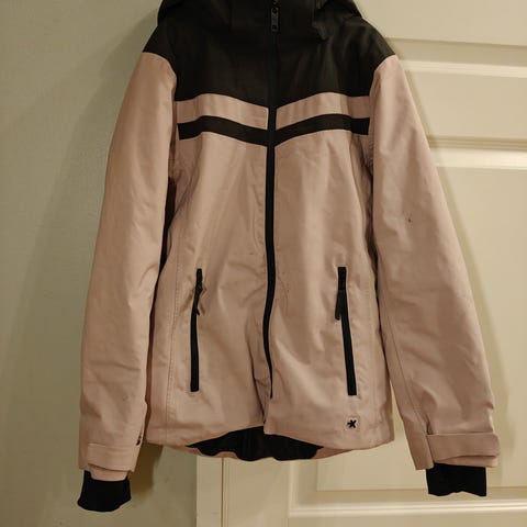 Hyväkuntoinen Everest-merkkinen talvitakki / laskettelutakki. Ollut meillä käytössä samaan aikaan muiden takkien kanssa ja tämä jäänyt vähäiselle käytölle. Siksikin todella hyväkuntoinen. Helmassa lunilukko, hihansuussa tasku hisslipulle, irrotettava huppu. Ainoa huomautus kuntoon liittyy nappilistan kankaaseen (ks. kuva), joka paikoin ”kupruilee”. Mielestäni vaikuttaa siltä, että kangas on ollut kiinnitettynä nappilistan tukikankaaseen tms, josta se on paikoin irronnut. Vika on ainoastaan esteettinen ja huomioitu hinnassa.