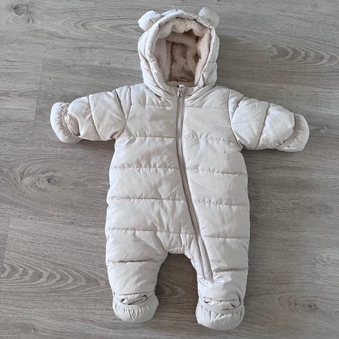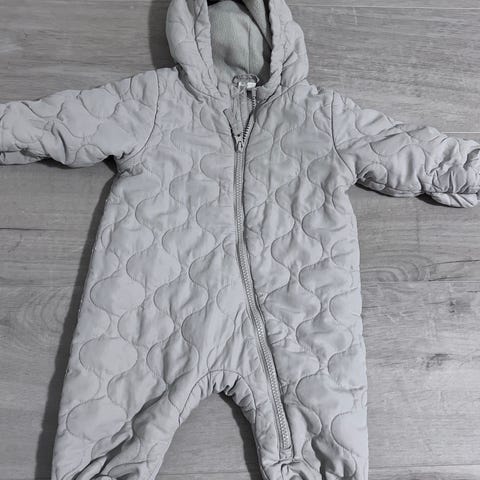 H&M vauvan haalari koossa 56. Haalarissa on vaaleanpunainen pohjaväri ja eläinprintti. Materiaalina pehmeä ja lämmin kangas, jossa on vuorattu sisäpuoli. Edessä vetoketju helppoa pukemista varten. Sopii vastasyntyneille ja pienille vauvoille. Siisti kunto. Vain nouto