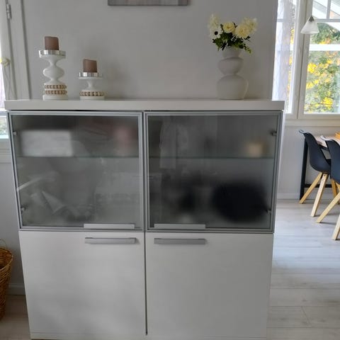 Käyttämätön Maskusta ostettu Fiesta senkki / lipasto lasikannella.