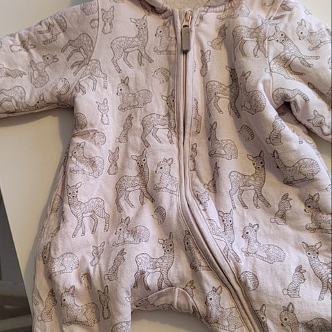 H&M vauvan haalari koossa 50 nepparikiinnityksellä. Haalari hieman paksumpi kuin tavalliset puuvillaiset sisähaalarit. Hyväkuntoinen ja söpö printti. Vain nouto