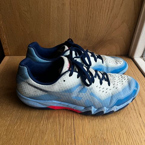 Asics Gel-Rocket 10 miesten sisäpelikengät, värit valkoinen ja musta, koko 42. Kengissä on hengittävä verkkomateriaali ja geelityynytys, joka tarjoaa iskunvaimennusta. Soveltuvat sisäurheiluun, kuten lentopalloon ja sulkapalloon.