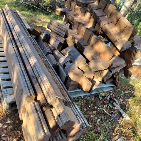 Hirsikehikko 11m x 6m talosta. Kuvassa mitat tarkemmin. Poiskuljetus 1kk tai erikseen sovittavalla aikataululla kaupanteosta (hirret ja puumateriaalit). Hormi, ikkunat ja kattopellit voivat jäädä kohteeseen.