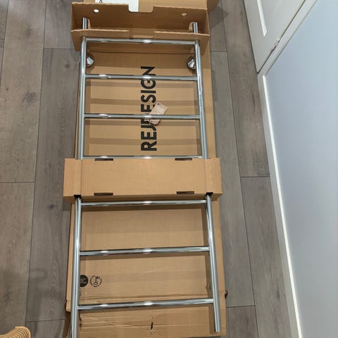 Uusi pyyhekuivain, yläreunan poikkupuu pari mm vino, ei huomattava eikä haittaa käyttöä (katso kuvat). Tarkemmat tiedot linkin takaa: