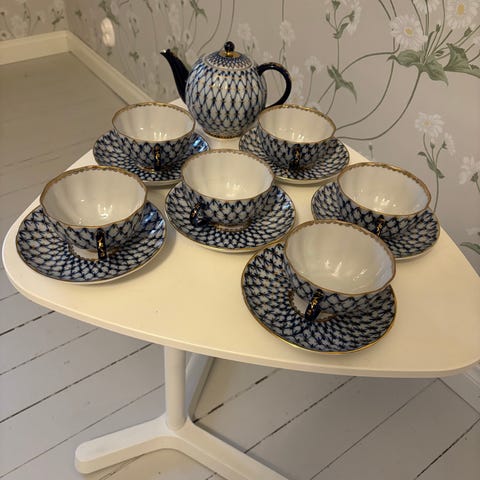 Lomonosov verkko tea set (6 cups+ 6 saucer plates + sugar bowl + milk jug)
