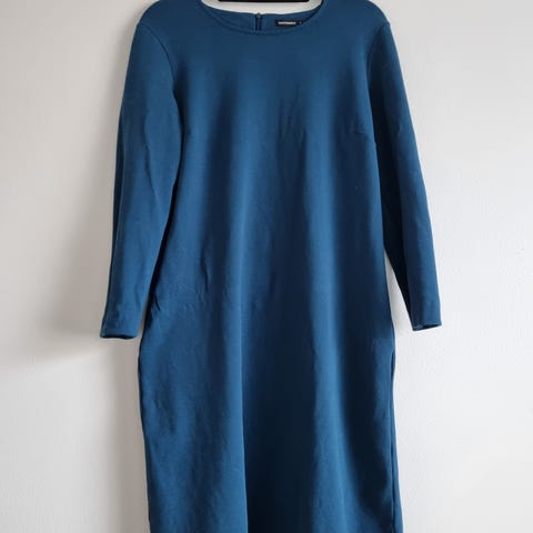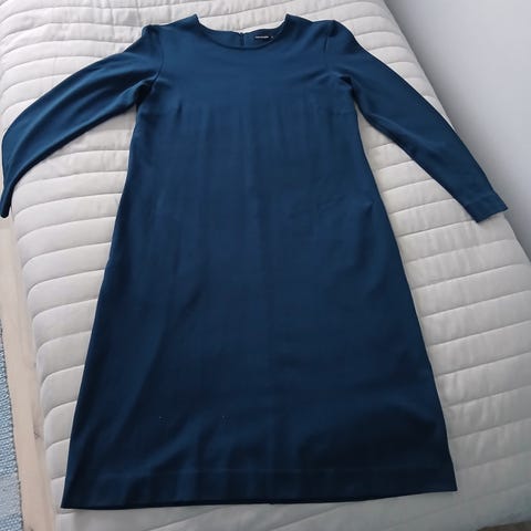 Myydään siisti ja hyväkuntoinen Marimekon Maxi Katima t-paitamekko. Materiaali pehmeää ja laskeutuvaa viskoosi-elastaani-trikoota. Väri syvän musta, ei haalistumaa. Kauniit kellotetut hihat, helmaa lyhennetty siististi (ks. kuva). Rinnan ympärys 100cm, lantion ympärys 109cm, helman ympärys 112cm. Pituus pääntien reunasta helmaan 125cm. Hartia pudotettu, hartian ja hihan yhteispituus pääntien reunasta hihansuuhun 46cm.