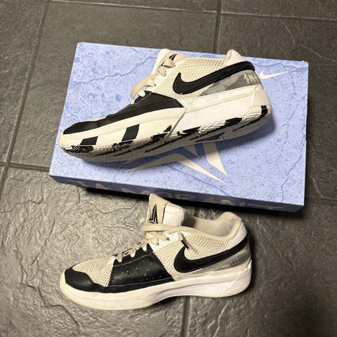Kuvan mukaiset Nike Hustle nuoren koripallokengät, musta/vaaleanpunainen.