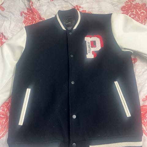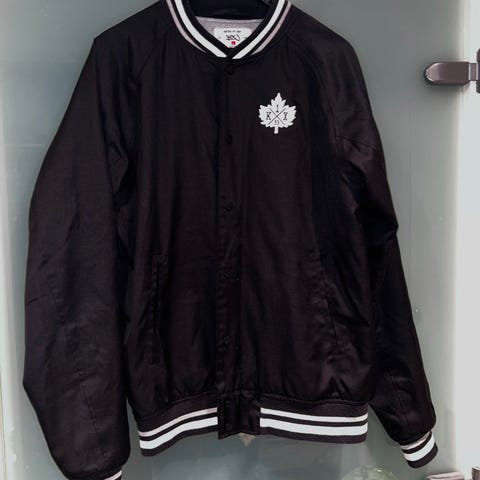 Farkkutyylinen wescin bomber-takki. Toppaustakin löytyy niin pärjää syksyllä ja keväälläkin