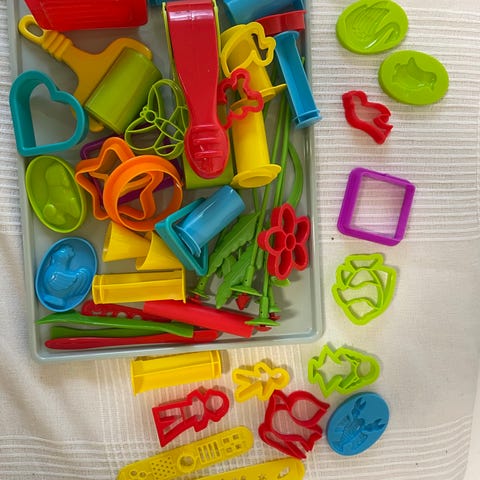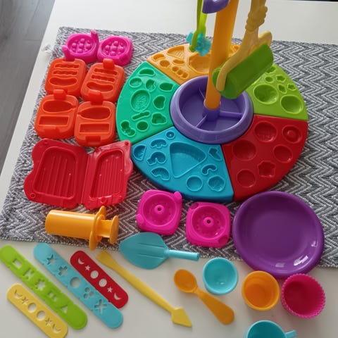 Muovailuvahasetti sisältää useita muotteja ja työkaluja muovailuun sekä Play Doh muovailualustan. Muottien merkistä ei ole varmuutta.