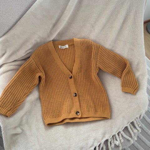 Kuvan neuleet, kaksi neuletakkia ja yksi bolero. Koot 110/116 cm.