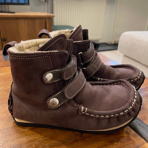 Zeazoon nahkaiset paljasjalka-talvikengät paksummalla pohjalla, koko 29. Mukavan leveä kärki niin, että villasukalle hyvin tilaa. Tarrat toimivat, kärjet kunnossa ja samoin vuoret. Kunto erinomainen.