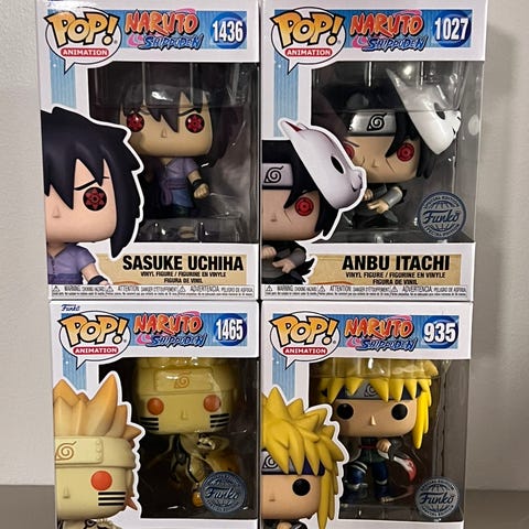 Overwatch, Naruto ja Fairy Tail Pop Funko! -figuureja; laatikot ei ole tallella.