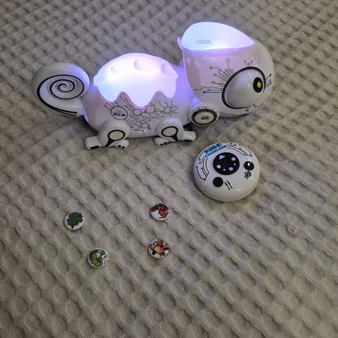 Myydään kameleontti robotti kahdella syötävällä.