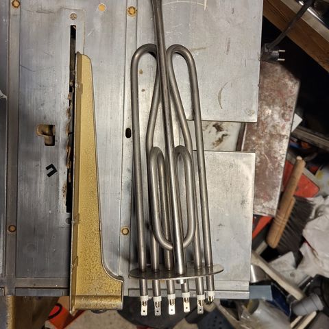 Kuvan vedenlämmitysvastus. Teho 6 kW. 2" kierteellä. Käytetty. Näitä löytyy kolme kappaletta. Hinta 40 € kpl.