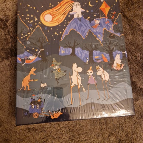 Pari joulukuuta palvellut muumiaiheinen joulukalenteri, joista jokaisen luukun takaa paljastuu pieni kirja.