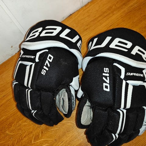 Bauer Vapor X40 jääkiekko käsineet, koko 10" (25 cm). Mustavalkoiset käsineet soveltuvat jääkiekkokäyttöön ja tarjoavat suojaa ja liikkuvuutta pelin aikana.