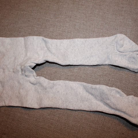 Kahdet sukkahousut ja yhdet potkuhousut, kokoina alhaalta ylöspäin 74/80, 70-80 ja 74 cm.