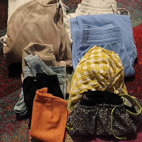 Myyntiin naisten vaatteita koossa xs. Paketissa mm. mekkoja, huppareita ja housuja.