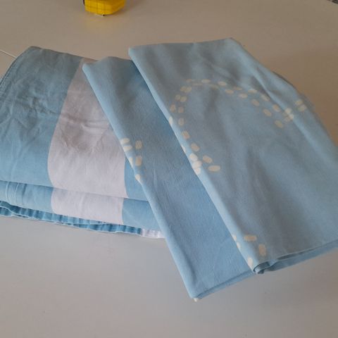 Uusi pussilakanasetti, leveys 150 cm ja tyynyliina 60 x 50 cm. Otettu paketista, mutta pahvit vielä purkamatta sisäpuolelta "pakettia".