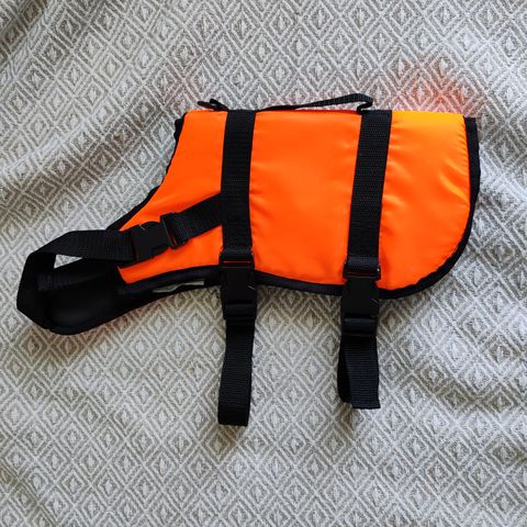 Sopii parhaiten keskikokoisille koirille, mutta iso säätömahdollisuus napinläpikuminauhassa. Selkä 28 cm, kaula n. 40 cm, koko pituus n. 38 cm. Materiaali joustavaa ja purkaantumatonta scuba-kangasta johon silitetty 3M heijastinnauhaa, joka sopii joustavalle kankaalle. Kaikki kolme yhteensä 18€.