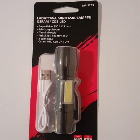 Ostin väärän koon... 300 mm pitkä, 40 mm leveä. Ladataan tai virta syötetään USB-kaapelilla.