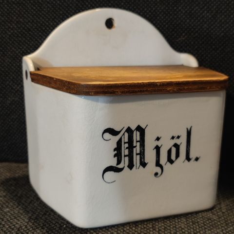 Arabian jauhoja seinään kiinnitettävä säilytysastia.