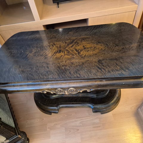 Vanhasta höyläpenkistä tehty olohuoneen pöytä. Pinta aikanaan hiottu ja lakattu, jolloin pöytä on helppo pitää puhtaana. Jalat on tilattu ja teetetty metallista ja niissä on pyörät, helpoittaa liikuttamista, koska pöytä painaa. Aivan ihana, mutta meidän nykyiseen olohuoneeseen liian iso, jonka vuoksi joudutaan pöytä myymään.