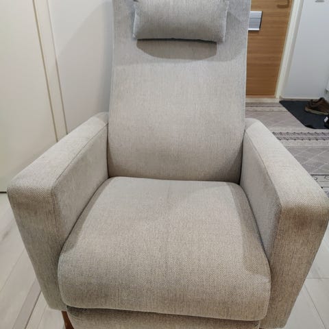 Myydään hyvä kuntoinen harmaa nojatuoli.